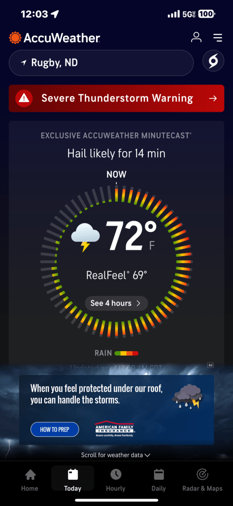 Ok, storm is past, I peered out the windows to see if I was still in North Dakota….All good, try to sleep and we’ll check into damage in the morning. Oh no, not in this story.